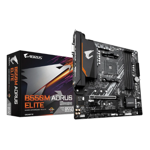 The AORUS B550M ELITE brings premium gaming performance to the compact Micro-ATX form factor. Built for enthusiasts who want a powerful yet space-efficient build, this motherboard provides a rock-solid foundation for AMD Ryzen™ 5000 and 3000 series processors. It features a robust digital power design and enlarged VRM heatsinks, ensuring stable power delivery to even high-core-count CPUs during intense gaming sessions.