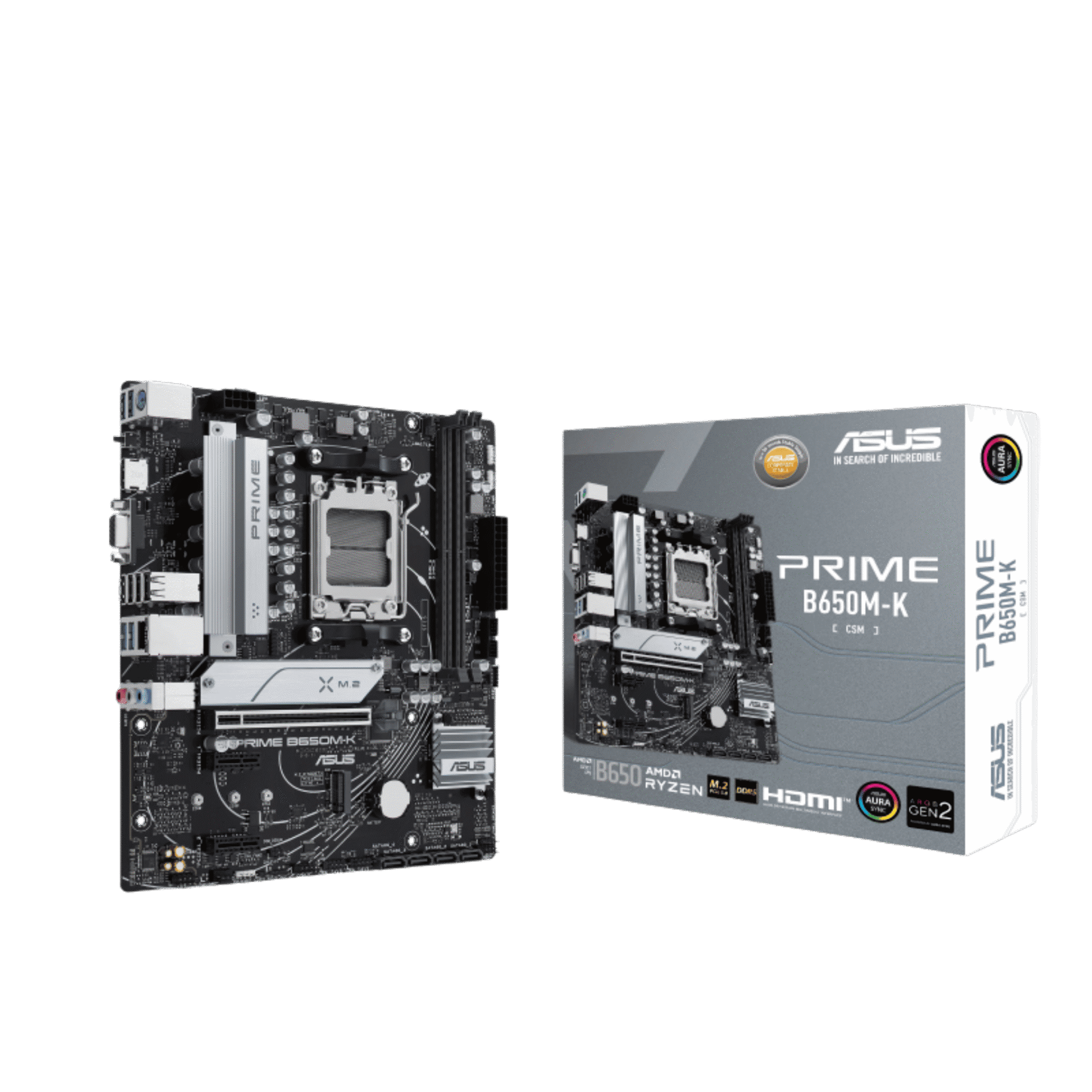 The ASUS PRIME B650M-K is a capable and cost-effective motherboard designed to bring the power of the AMD AM5 platform to a wide range of users. Perfectly suited for office workstations, home PCs, and budget-conscious gaming builds, this motherboard delivers a solid foundation with a focus on reliability and essential features. It offers comprehensive support for the latest AMD Ryzen™ 7000, 8000, 9000 series processors, unlocking next-generation performance.
