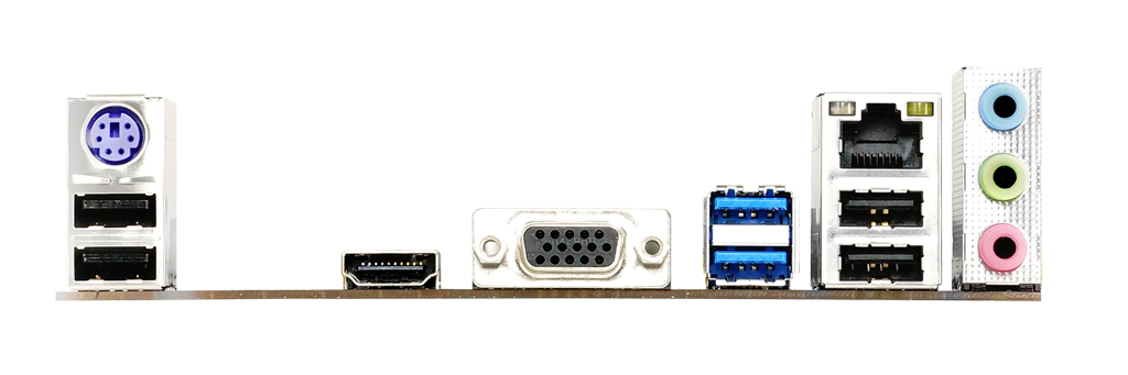 Connectivity options include HDMI for integrated graphics output, Realtek RTL8111H Gigabit LAN for network connectivity, and a variety of USB ports, including USB 3.1 Gen1 and USB 2.0, for connecting peripherals and devices. The board also features 7.1 channel HD audio powered by the Realtek ALC887 codec, delivering adequate sound quality for general use.