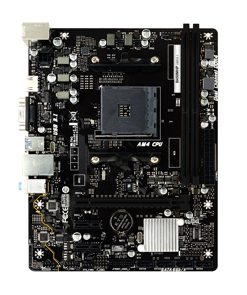 The Biostar B450MHP is a micro ATX motherboard designed to provide reliable performance and essential features for budget-conscious users building entry-level to mid-range systems. It is based on the AMD B450 chipset, supporting a wide range of AMD Ryzen processors, including 1st, 2nd, and 3rd generation Ryzen CPUs, as well as Ryzen 4000 G-Series processors, making it versatile for various builds.